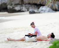 For the second day in a row, the pair soaked up the sunshine in St Barts. The couple walked hand in hand as they strolled along the beach looking for a suitable spot to set down their towels.