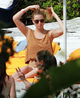 Whitney Port and her new boyfriend returning from the beach and relaxing by the pool at their hotel in Miami, FL on January 22, 2012. Whitney and her new man took a quick dip and her top fell off (twice!) but like a gentleman he helped her put it back on.